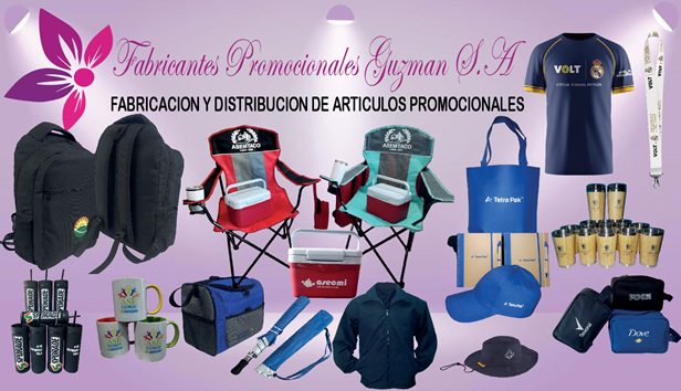 FABRICANTES Y PROMOCIONALES GUZMAN, SOMOS UNA EMPRESA DEDICADA A LA FABRICACION Y DISTRIBUCION DE ARTICULOS PROMOCIONALES, CON GRAN TRATO PERSONAL, A NIVEL NACIONAL A TRAVÉS DE LA MEJOR ATENCIÓN.